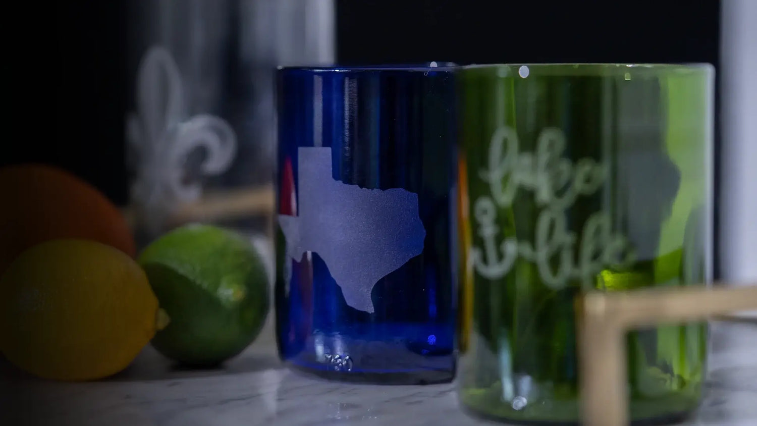 At A Second Round Glass, every sip tells a story. Based in the small town of Montgomery, Texas, our journey began with a simple idea — transforming discarded wine bottles into unique, handcrafted drinking glasses. What started as a passion project in a family garage has grown into a mission-driven business focused on sustainable upcycled glassware. Each glass is made from 100% recycled wine bottles, carefully cut, shaped, and polished by hand. Our signature smooth fire-polished rims provide a comfortable sip every time, while the variety of sizes, colors, and custom engraving options allow for a truly personalized experience. From classic everyday drinkware to custom logo glassware for businesses, our products combine function, sustainability, and style. Whether you’re shopping for custom gifts, holiday drinkware, or bulk orders for your bar or restaurant, A Second Round Glass is your source for high-quality, handcrafted glassware made with purpose and pride.