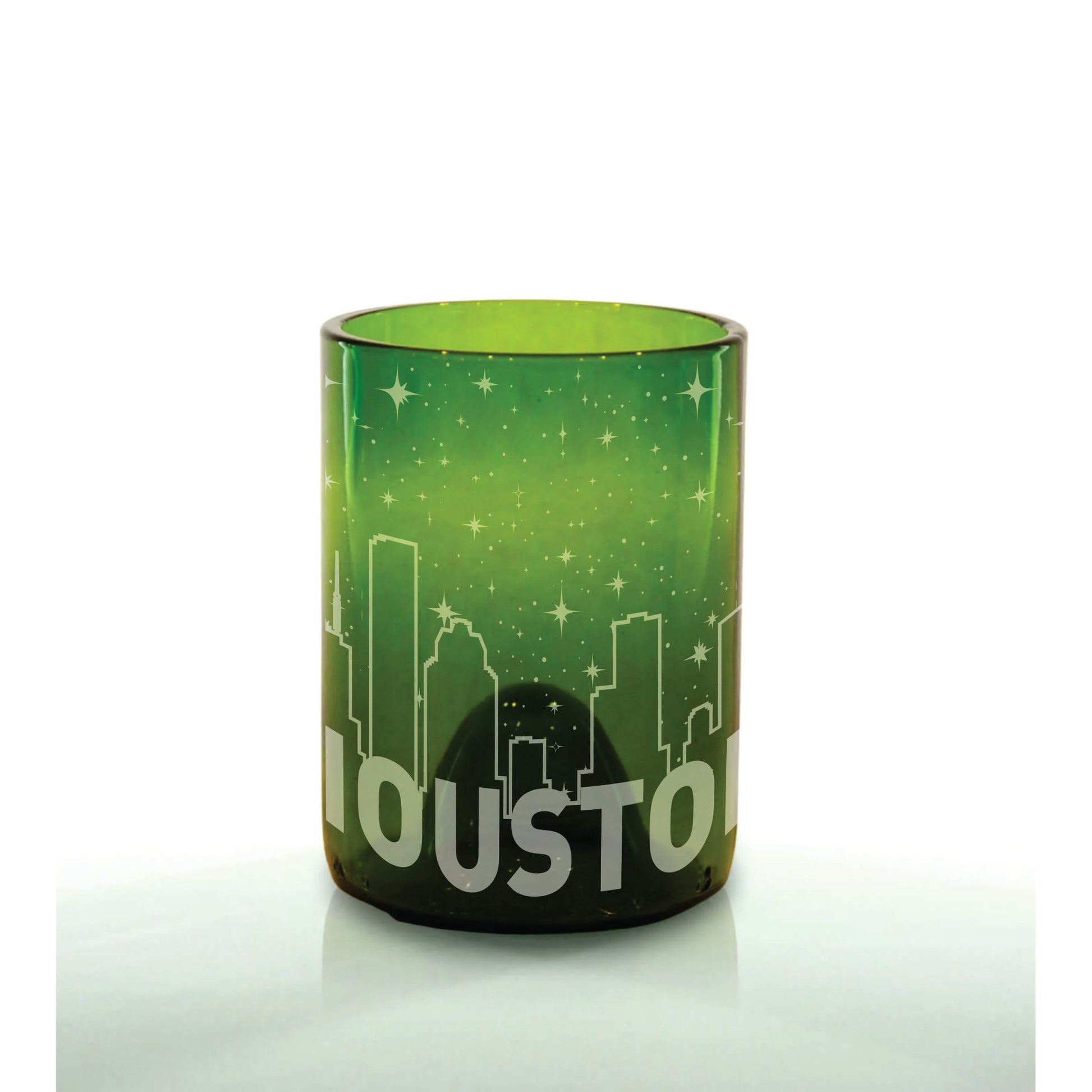 Wet your whistle with these Houston Skyline 360 wrap upcycled glasses—they're the real deal: handmade in Texas, eco-friendly, and stunningly beautiful! Repurposed wine and Topo Chico bottles are rescued and collected by the community, known as the "bottle brigade". They then embark on their journey through our upcycling process where they are fire-polished, heated, and cooled to create a smooth, dishwasher-safe, durable finish, and engraved with a design meaningful to you. Choose from our standard engravings or create your own to make every drink, from sparkling water to whiskey, a reason to celebrate. Thank you for helping us in our vision to create something real out of emptiness