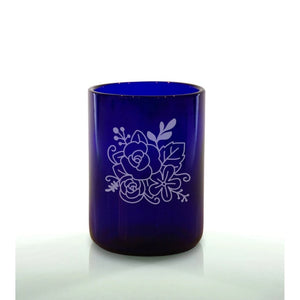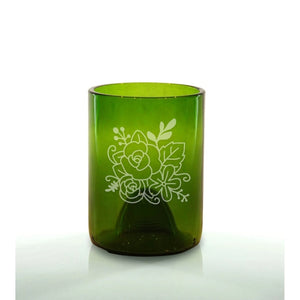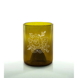 The Floral design features an engraved bouquet of blooming flowers, bringing a soft, elegant, and feminine touch to your upcycled glass. With detailed linework and timeless botanical charm, this design is perfect for gardeners, floral lovers, spring décor, weddings, or anyone who appreciates meaningful, handcrafted drinkware. Blending sustainability with artistry, it adds beauty and intention to any collection.